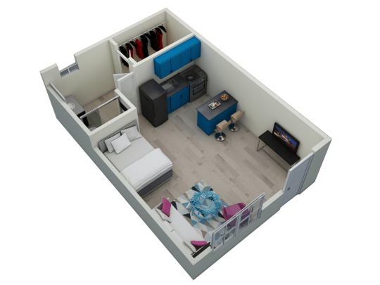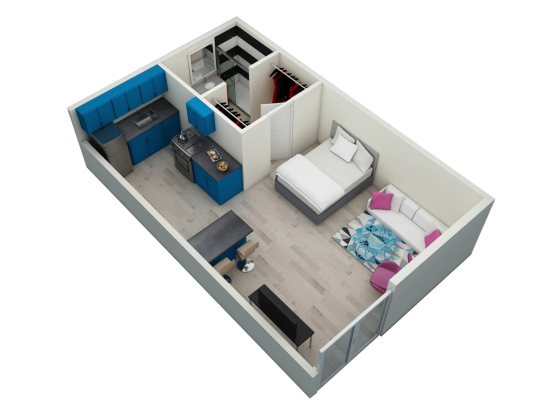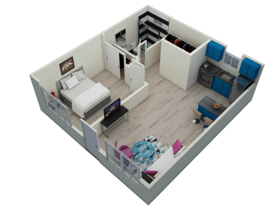Our modern floor plans include the Swag Studio (430 sq. ft.), Chic Studio (450 sq. ft.), and Luxe One Bedroom (600 sq. ft.). Each apartment is crafted with comfort and functionality in mind, featuring hardwood-inspired flooring, energy-efficient appliances, large closets, and custom-tiled finishes that elevate your everyday experience.